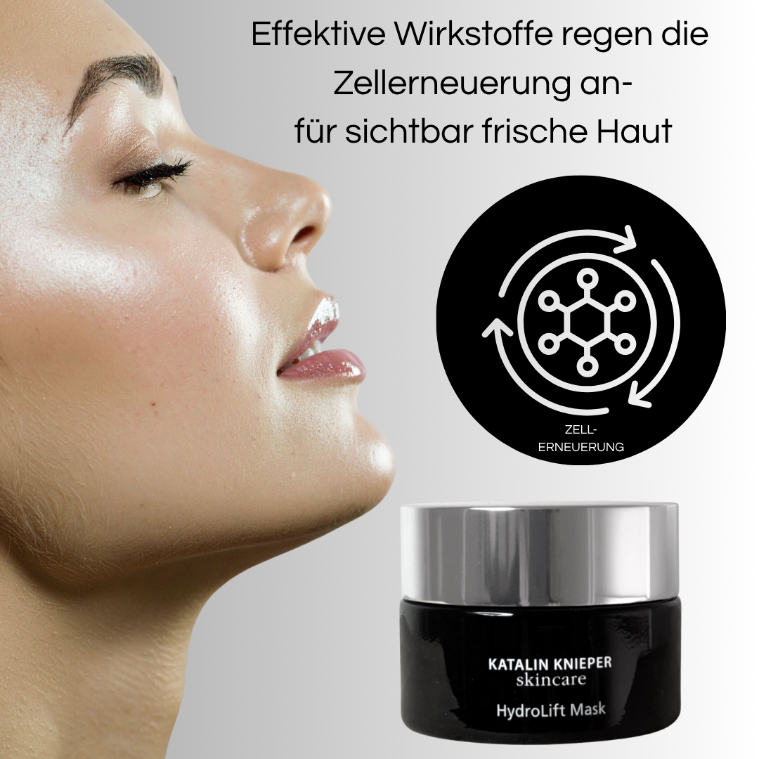 Tragen Sie unsere Hydrolift Mask auf und lassen Sie diese für ca. 20 Minuten einwirken. Überreste können einmassiert oder mit warmem Wasser abgenommen werden.