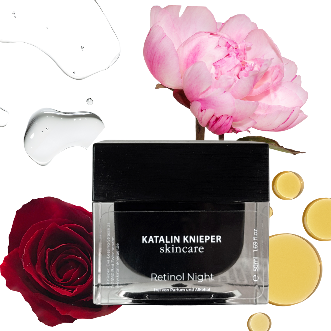 Das Zusammenspiel von verkapseltem Retinol, quervernetzter Hyaluronsäure und dem Anti-Aging-Extrakt der schwarzen Baccara-Rose verspricht eine wirksame Zellerneuerung und Sauerstoffoptimierung der Haut. Pfingstrosenextrakt lässt auf einen natürlichen Detoxeffekt schließen, der die Haut von schädlichen Einflüssen befreien kann. Ein reizvolles Versprechen ist es, den natürlichen Alterungsprozess der Haut aufzuhalten und die Alterserscheinungen zu lindern.